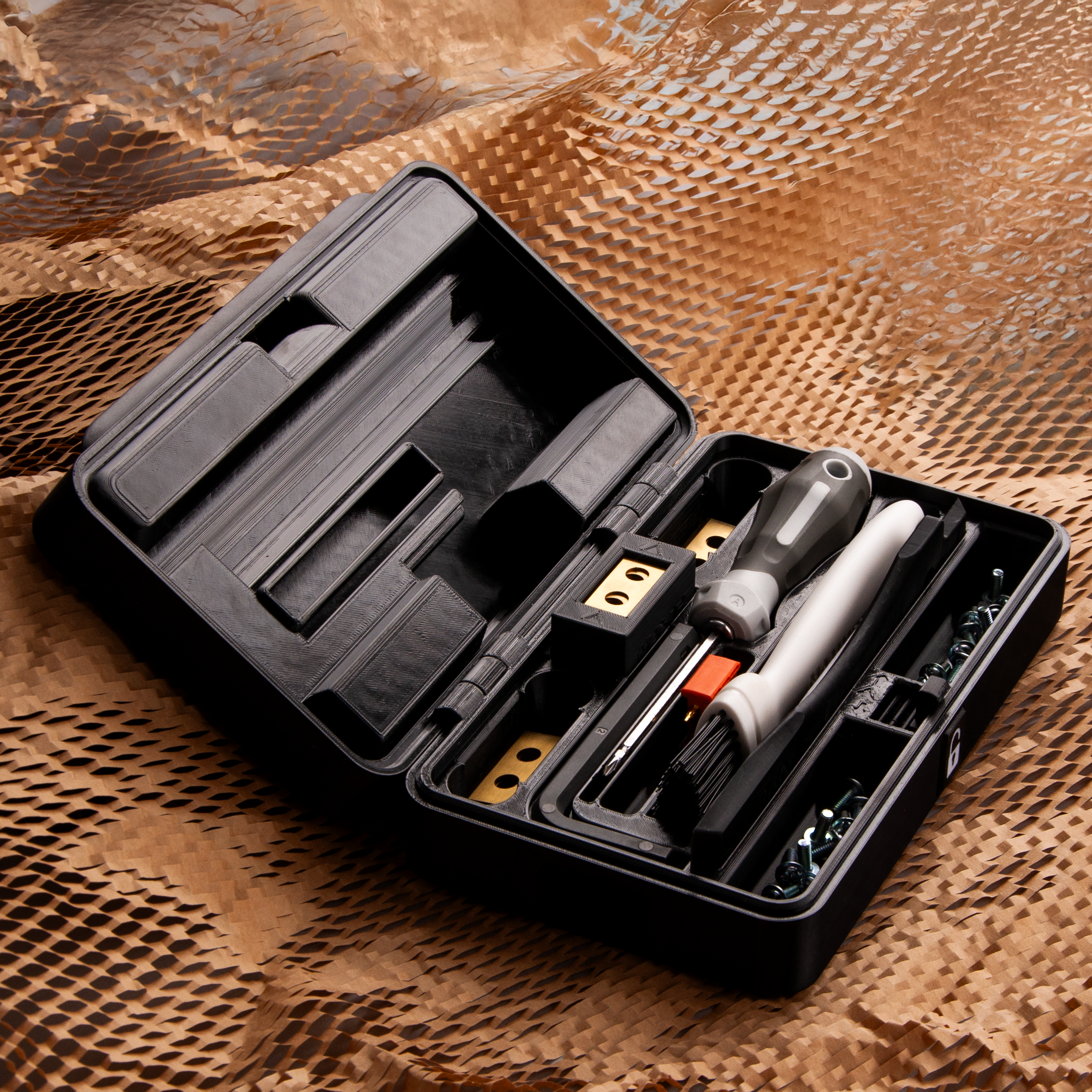 Razdelilnik rezil: Ohranja rezervna rezila varno shranjena, suha in vedno pri roki — brez razsutih rezil in izgubljenih vijakov.