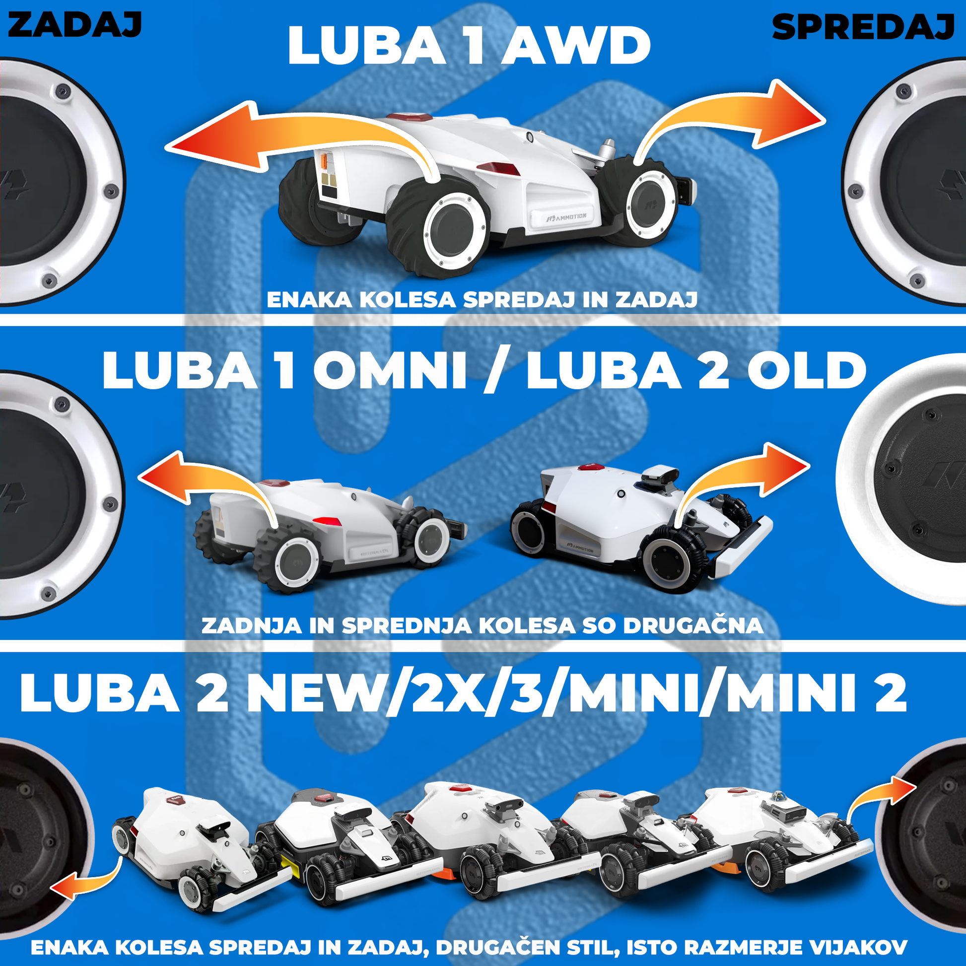Mammotion Luba 1, 2, 2X, 3, Mini & Mini 2 pokrov koles - Športni stil